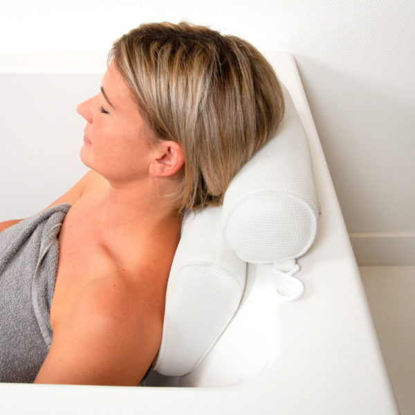 Als je in bad gaat dan wil je er wel van kunnen genieten en comfortabel zitten. Maar omdat het bad hard is en harde randen heeft is dat niet comfortabel voor je nek en rug. Eventjes lukt misschien nog wel, maar na een tijdje gaat je nek en rug toch pijn doen. Om comfortabel in bad te kunnen zitten heeft VITILITY de bad rug/nek kussen. Doordat de kussen zacht is en je nek en rug ondersteunt kan je comfortabel in bad zitten en lekker ontspannen. Aan de achterzijde heeft de kussen twee zuignappen, waarmee je de kussen kan bevestigen aan de wand van het bad. Tevens zorgen de zuignappen er ook voor dat het kussen op zijn plek blijft als je hoofd er tegenaan ligt. Door het compacte design is het badkussen makkelijk mee te nemen. Maar vaak is de ondersteuning van nek en rug niet het enige probleem om comfortabel in bad te kunnen zitten. Doordat het bad glad is kan je wegglijden als je in bad zit. Vooral als je klein bent en je niet met je voeten bij het eind van het bad komt om jezelf tegen te kunnen houden. Hiervoor kan je een badmat gebruiken. Doordat een badmat zuignappen heeft is hij eenvoudig te bevestigen en kan hij niet wegglijden. Door de antislip bovenzijde kan je in bad zitten zonder dat je wegglijdt. Mocht je echter moeite hebben met het gaan staan en zitten in bad, dan kan je ook een wandbeugel gebruiken. Een handige wandbeugel is de Quick Mobile Rail. De Quick Mobile Rail is te bevestigen met twee krachtige zuignappen, dus je hoeft niet in je badkamer muur te boren om de wandbeugel te bevestigen. Mocht je interesse hebben in een badmat of de Quick Mobile Rail, ga dan naar Bed & Bad – Veiligheid in de badkamer.